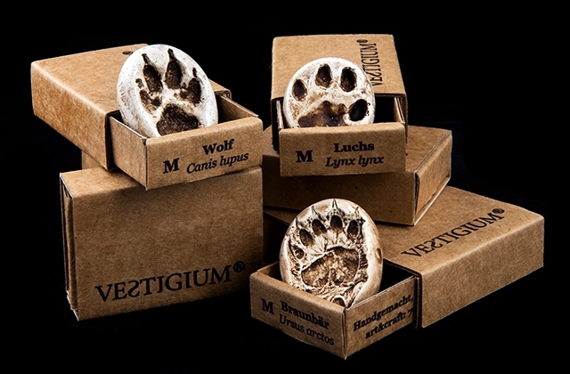 Diese Fußstapfen wurden aus der Natur genommen, verkleinert und dann als Anhänger und in Magnete gegossen.